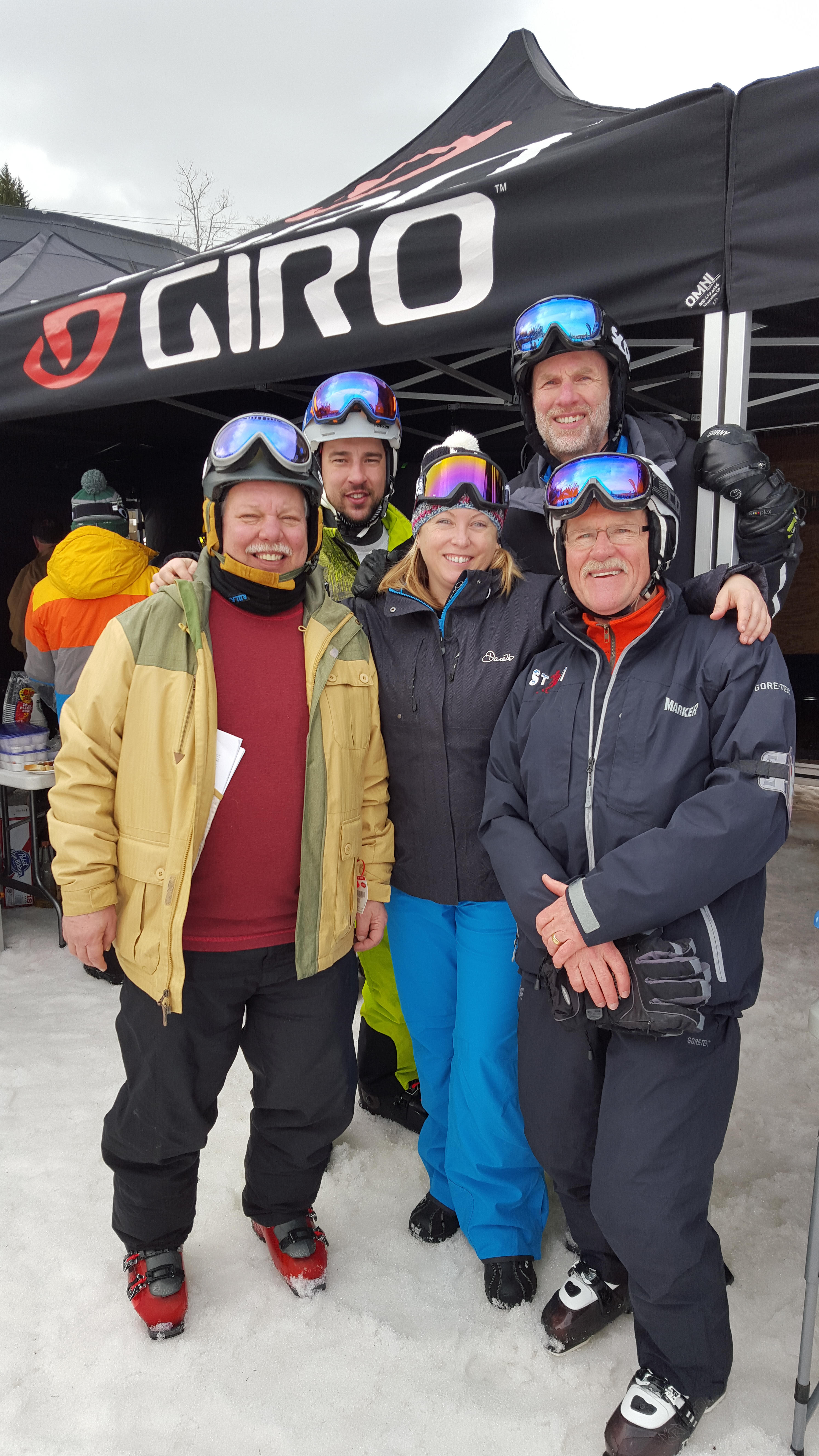 Ski Tunes Grant, Bill, Steve and Scott at Stratton for Demo Days. They are pictured at the Giro tent with their rep Kerry.